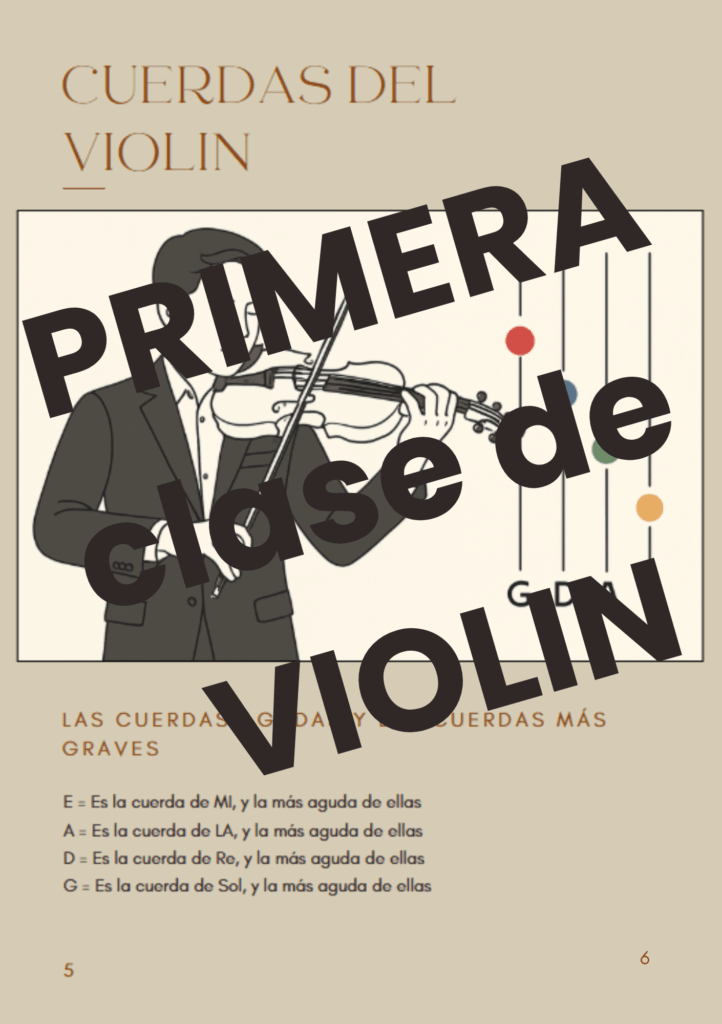 Hoy vamos a comenzar con algo muy especial, que es el primer acercamiento al violín. Este instrumento tiene una historia larguísima y un sonido que puede ser muy profundo o muy alegre, según cómo lo toquemos. Lo primero que vamos a ver son las partes del violín, porque para poder tocarlo bien, necesitamos conocerlo. Saber dónde están el puente, las clavijas, la voluta, el diapasón. Después de eso vamos a conocer las cuerdas. Cada una tiene un sonido diferente. Les voy a mostrar cómo se nombran y cómo están ordenadas.